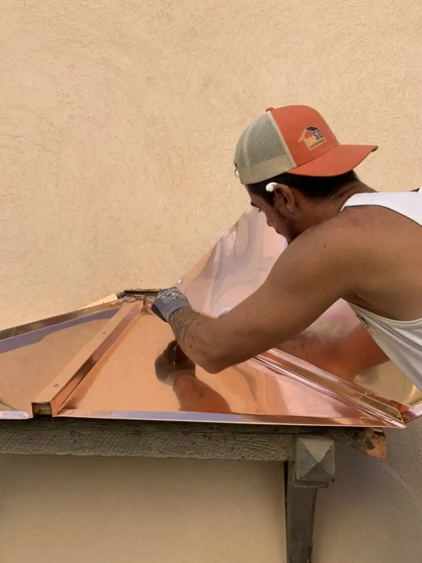 L'entreprise se distingue par son expertise dans le travail du cuivre, un savoir-faire qui requiert une grande précision et une attention au détail. Chaque marquise en cuivre réalisée par Termi Sud Couvertures est le fruit d'un travail artisanal de qualité, conçue pour s'harmoniser parfaitement avec l'esthétique du bâtiment tout en offrant une protection efficace contre les intempéries.
